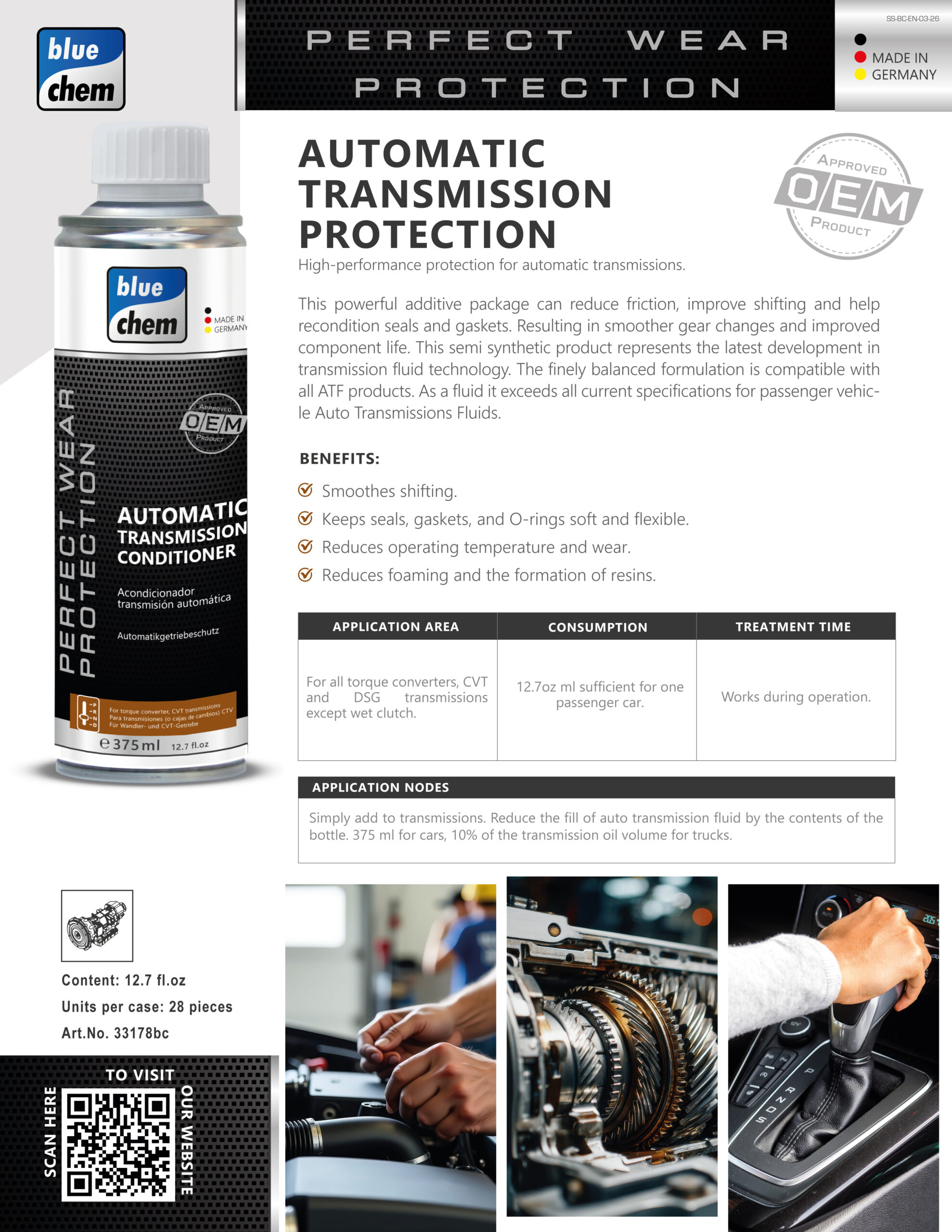 This powerful additive package can reduce friction, improve shifting and help recondition seals and gaskets. Resulting in smoother gear changes and improved component life. This semi synthetic product represents the latest development in transmission fluid technology. The finely balanced formulation is compatible with all ATF products. As a fluid it exceeds all current specifications for passenger vehicle Auto Transmissions Fluids.
